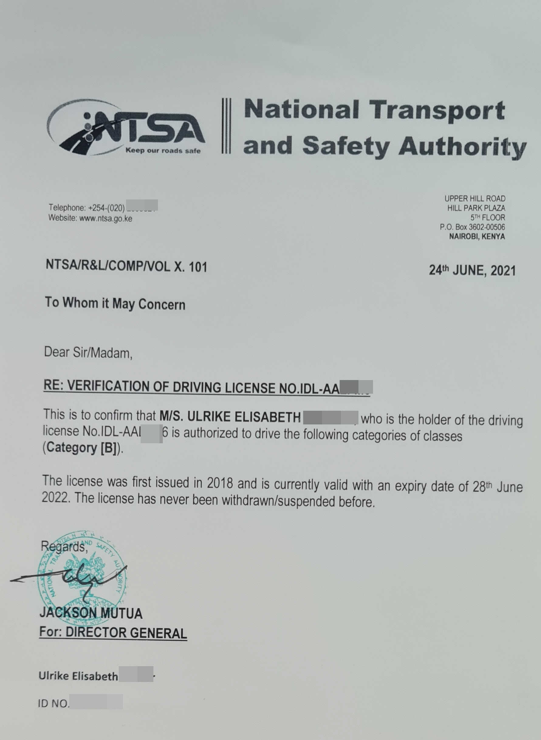 - verifying driving licence